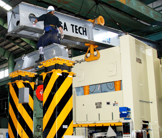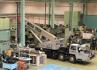 | This service proved to be so timely that our staff rapidly grew and we continue to grow our skills, experience, and equipment to this day. Presently Megatech operates some 10 vehicles of various sizes (including a 50 ton oversize flatbed trailer and a 60 ton Gantry crane) in delivering and setting up all presses and equipment that we sell. No task is too small or large for our experienced staff who will not only install, but properly center and prepare your equipment upon delivery. |