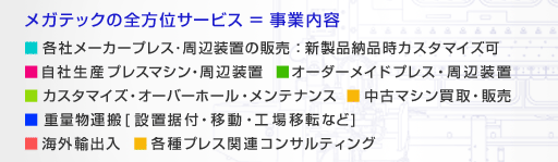HOME メガテックについて 取扱製品 取扱業務 海外事業 中古機械情報 採用情報 お問い合わせ